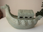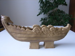 2008De boot is op voetstukken opgebouwd. Aan weerszijden van de boot zijn vleugels geboetseerd. De boeg vertoont een vogelkop
