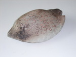 2012schelp, aardewerk met engobe beschilderd, gestookt in de papieroven.