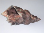 2014Schelp, aardewerk, met engobe beschilderd, met transparant glazuur op 1050 gestookt.